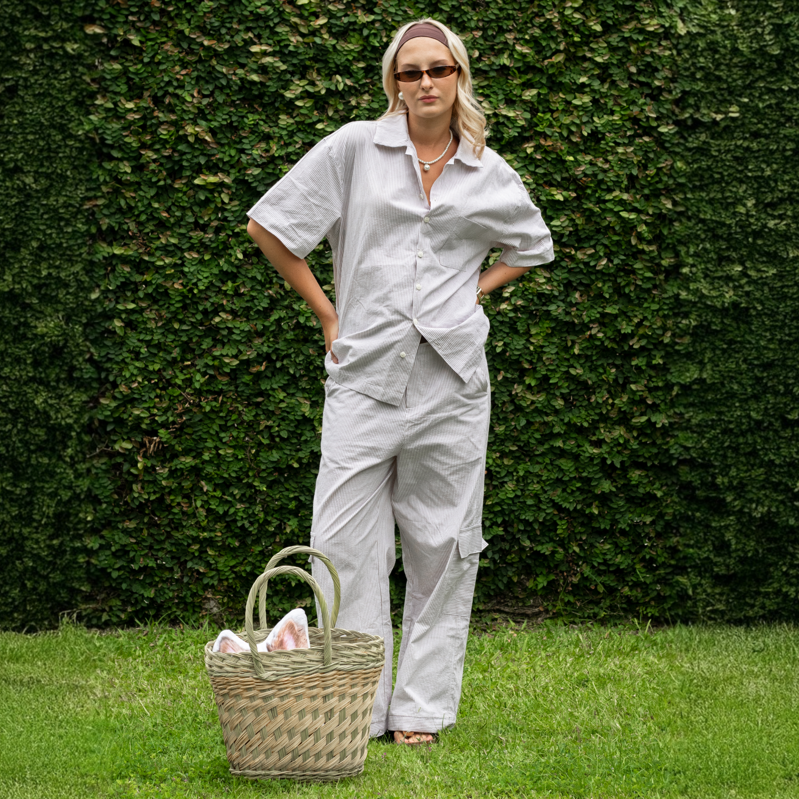 A camisa listrada manga curta possui um tecido de 100% algodão com listras em cinza e branco e modelagem boxy (Silhueta quadrada). Possui um bolso frontal no peito esquerdo, contando também com estampas acima do bolso e nas costas feitas exclusivamente para a coleção, utilizando a técnica de Silk Screen. Feito no Brasil, essa camisa é perfeita tanto para o dia quanto para as noite quentes, podendo ser usada aberta ou fechada.