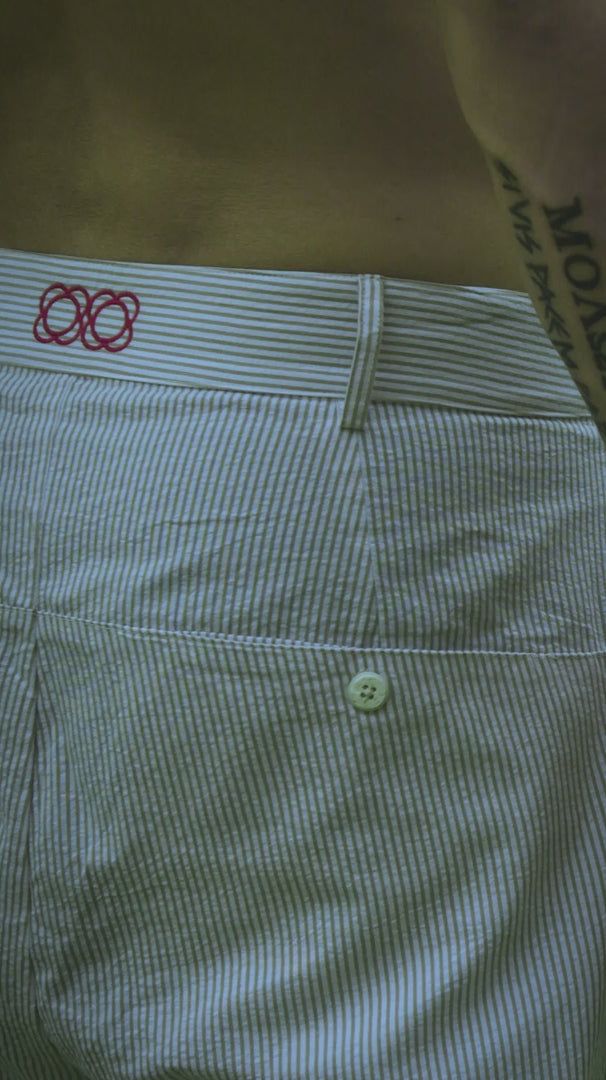 A Calça Douce Vie confeccionada em tecido Ana Ruga 100% algodão, possui caimento solto e é leve e respirável. Uma peça feita para o verão. Possui bolsos funcionais e bordados exclusivos aplicados no cós e em uma das barras, trazendo identidade a peça.
